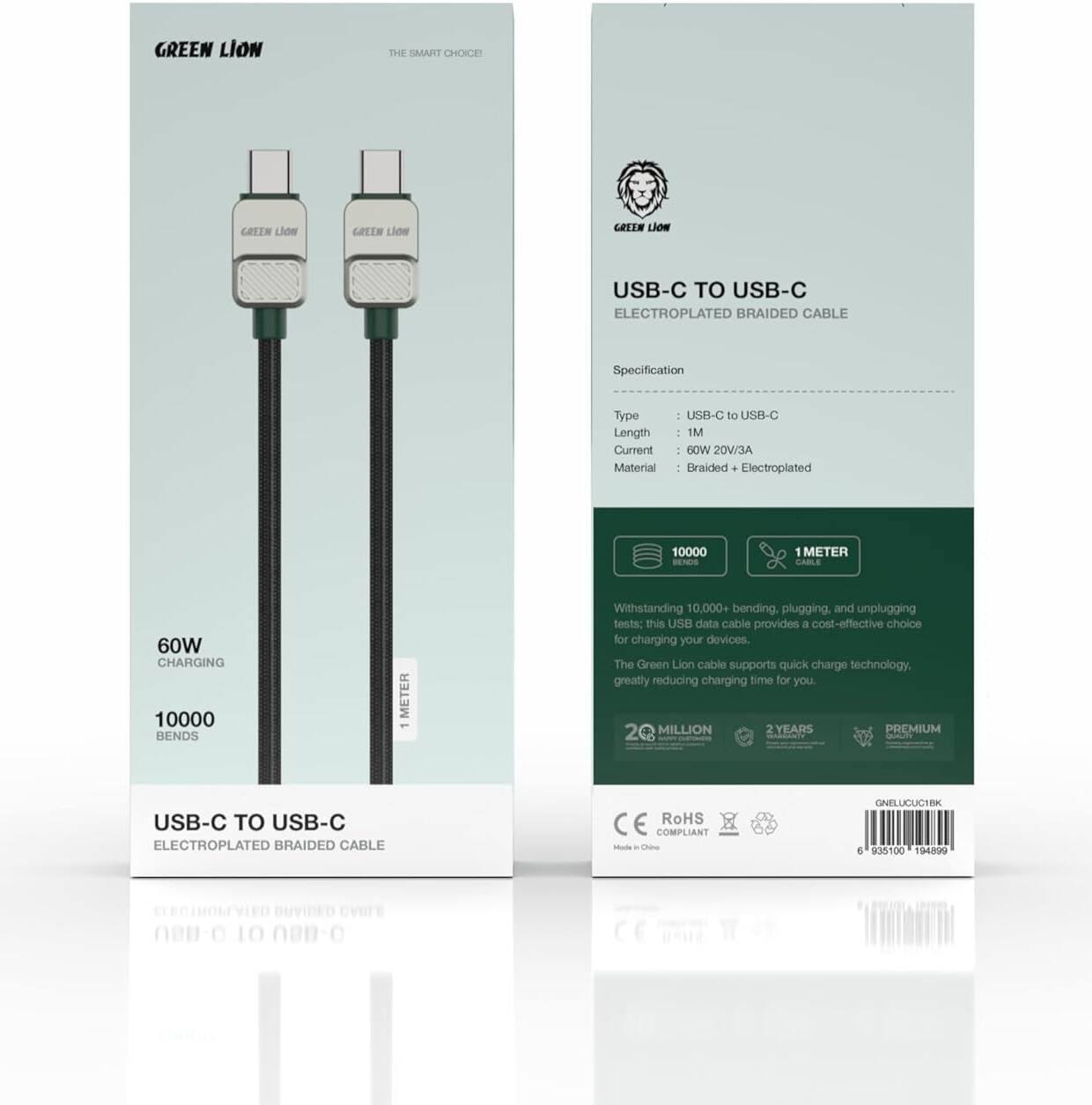 کابل USB-C به USB-C بافته شده و الکتروپلیت شده گرین لاین Green Lion