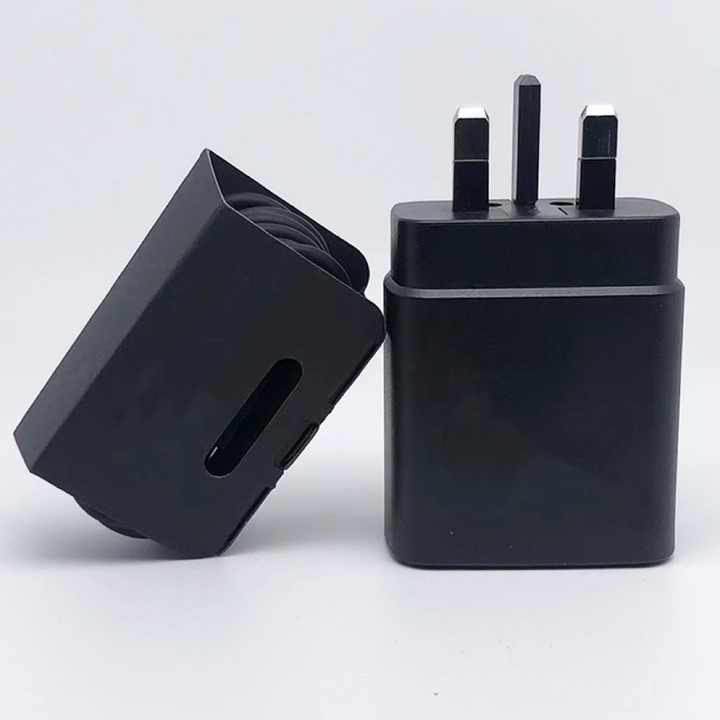 شارژر دیواری سامسونگ به همراه کابل Samsung 45W EP-TA845 Type-C شارژر اورجینال سامسونگ می باشد. این آداپتور دارای فناوری PD 3.0 است که با استفاده از آن می توانید دستگاه خود را با سرعت بیشتر و با توان 45 وات شارژ کنید. شدت جریان خروجی این شارژر 5 آمپر می باشد که می توان از آن برای شارژ کردن تبلت هم استفاده کنید. برای این شارژر از چیپ هوشمندی استفاده شده تا با اتصال دستگاه به صورت خودکار جریان مناسب را برای دستگاه تامین کند. درگاه خروجی این محصول هم از نوع USB-C است. البته در کنار این شارژر یک کابل تبدیل USB-C به USB-C به طول یک متر هم ارائه میشود. شارژر EP-TA845 سایر محصولات و موبایل های سری 2019 به بالا و گوشی هایی که توانایی شارژ سوپرفست را دارند پشتیبانی می کند.