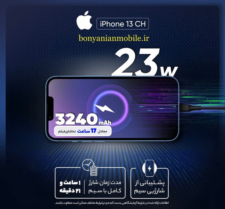ظرفیت باتری : ۳۲۴۰ میلی آمپر ساعت