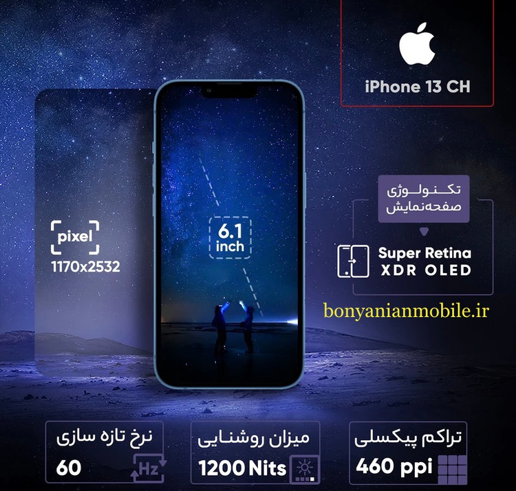 سایر قابلیت ها : شیشه سرامیکی مقاوم در برابر خراش، پوشش اولئوفوبیک / طیف وسیع رنگ / True-tone / Super Retina XDR OLED / HDR۱۰ / Dolby Vision