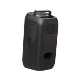 اسپیکر JBL PartyBox Club 120 از نظر طراحی ظاهر چشمگیری دارد که به راحتی توجه هر کسی را به خود جلب میکند. ابعاد آن معادل ۲۸۸.۴x۵۷۰x۲۹۷ میلیمتر است و وزن آن ۱۱۰۵۰ گرم است که به نسبت دیگر اسپیکرهای قابل حمل در همین دسته، سنگین و حجیم به نظر میرسد. این وزن زیاد به دلیل وجود سیستمهای صوتی قدرتمند و باتری لیتیوم پلیمری بزرگ در داخل اسپیکر است. در واقع، طراحی این محصول به گونهای است که بتواند صداهای بلند و با کیفیت را در فضاهای بزرگ تولید کند و بدنه آن به گونهای ساخته شده که بتواند در برابر ضربات و شرایط محیطی مختلف مقاومت کند. اسپیکر JBL PartyBox Club 120 از بلوتوث ۵.۴ پشتیبانی میکند که یکی از بهترین نسخههای بلوتوث موجود است و امکان اتصال سریع و پایدار به دستگاههای مختلف نظیر گوشیهای هوشمند، تبلتها و لپتاپها را فراهم میآورد. علاوه بر این، این اسپیکر دارای ورودی USB و AUX نیز هست که به کاربران این امکان را میدهد تا از طریق کابلهای مختلف به اسپیکر متصل شوند. یکی از ویژگیهای جالب اسپیکر PartyBox Club 120، ورودی گیتار آن است. این ورودی به شما این امکان را میدهد که به راحتی گیتار یا سایر سازهای موسیقی را به اسپیکر وصل کنید و صدای آن را از طریق اسپیکر بشنوید. این ویژگی برای کسانی که علاقهمند به اجرای زنده موسیقی هستند، بسیار مفید است.