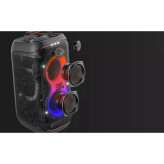 یکی از مهمترین ویژگیهای هر اسپیکر، کیفیت صدای آن است. اسپیکر PartyBox Club 120 دارای دو ووفر ۵.۲۵ اینچی و دو توییتر ۲.۲۵ اینچی است که توان خروجی کلی آن به ۱۶۰ وات میرسد. این توان خروجی باعث میشود که صدا در فضاهای بزرگ به راحتی پخش شود و حتی در فواصل دور نیز کیفیت خود را حفظ کند. سیستم صوتی این اسپیکر به گونهای طراحی شده است که صدای بیس عمیق و برجستهای را تولید میکند که مخصوصاً برای علاقهمندان به سبکهای موسیقی پُر انرژی و پر سر و صدا مانند EDM، هیپ هاپ، راک و پاپ ایدهآل است. همچنین، بلندگو از فناوریهای صوتی پیشرفته برای ایجاد تعادل مناسب بین فرکانسهای بالا و پایین بهره میبرد که باعث میشود صدا در هر فرکانسی واضح و شفاف باشد. اسپیکر PartyBox Club 120 به یک باتری لیتیوم پلیمری با ظرفیت ۴۲۷۷ میلیآمپر ساعت مجهز است که میتواند تا ۱۲ ساعت پخش موسیقی را با یک بار شارژ فراهم کند. البته، مدت زمان پخش بسته به سطح صدا و نوع محتوای صوتی متفاوت خواهد بود. این اسپیکر قادر است صدای بلند و با کیفیتی را برای مدت طولانی پخش کند که آن را به گزینهای مناسب برای مهمانیها و جمعهای بزرگ تبدیل میکند. برای شارژ این دستگاه، به حدود ۳.۵ ساعت زمان نیاز دارید تا باتری آن به طور کامل شارژ شود.