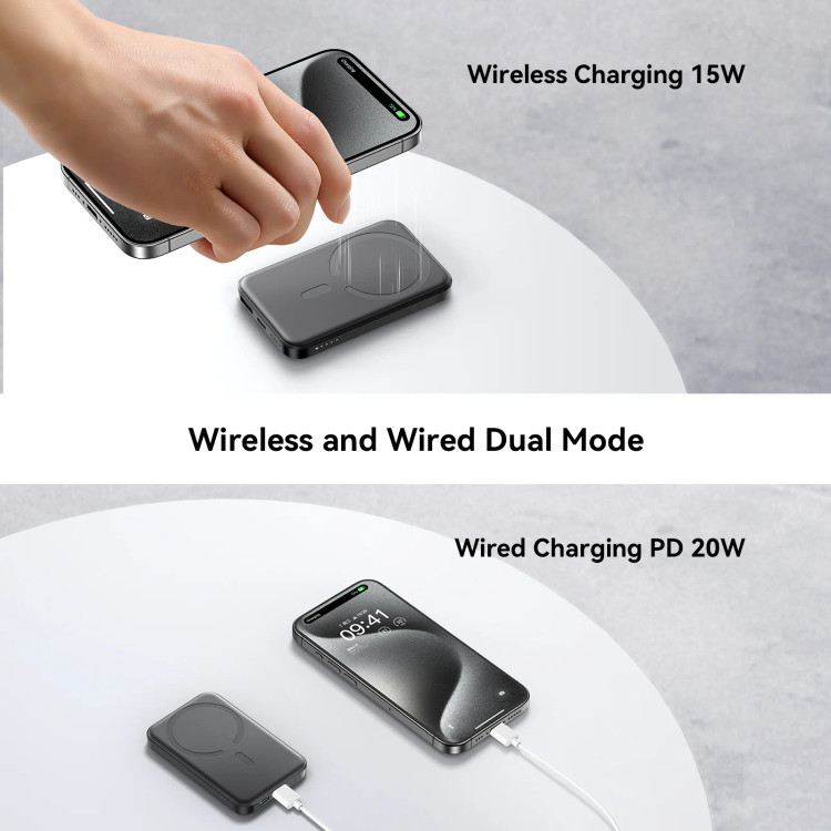 یکی از ویژگیهای منحصر به فرد پاوربانک JOYROOM JR-PBM08، توانایی شارژ بیسیم تا 15 وات است. این ویژگی به شما امکان میدهد که بدون نیاز به کابل، تنها با قرار دادن دستگاه خود روی پاوربانک، آن را به سرعت شارژ کنید. علاوه بر این، پاوربانک از شارژ سریع PD20W پشتیبانی میکند که باعث میشود گوشی شما تا 3 برابر سریعتر شارژ شود. این ویژگی به ویژه برای افرادی که به دنبال شارژ سریع دستگاههای خود بدون اتلاف وقت هستند، بسیار کارآمد است.